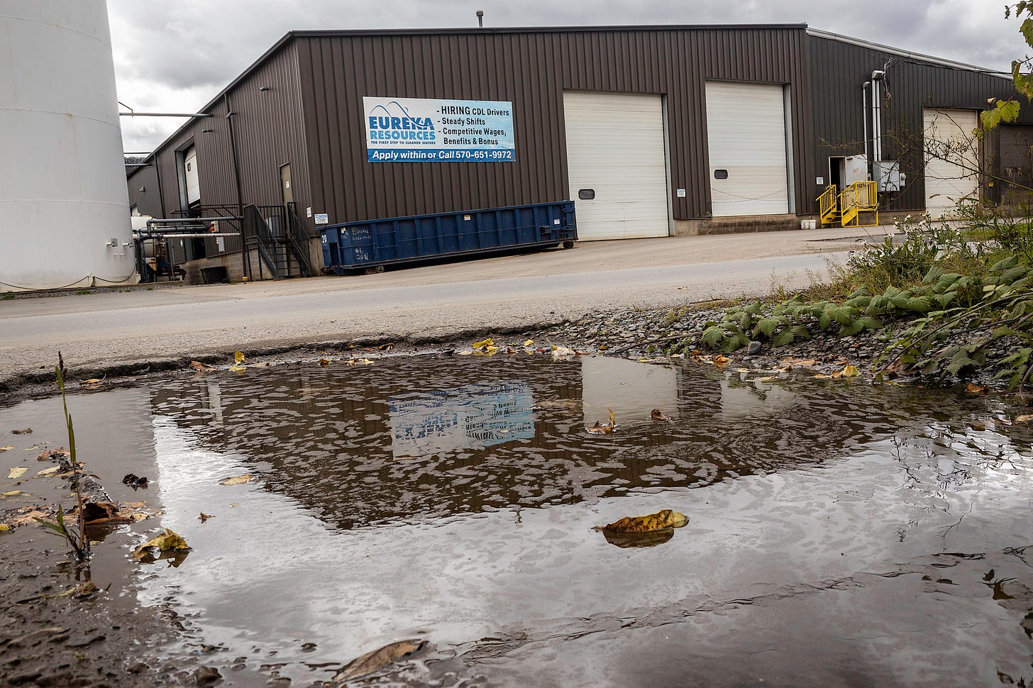 DEP now says Eureka began removing the stored material from the Williamsport Second Street facility on October 27, 2025, following the spill, and has since begun emptying the Williamsport Catawissa Avenue facility (a.k.a. “Reach Road”).