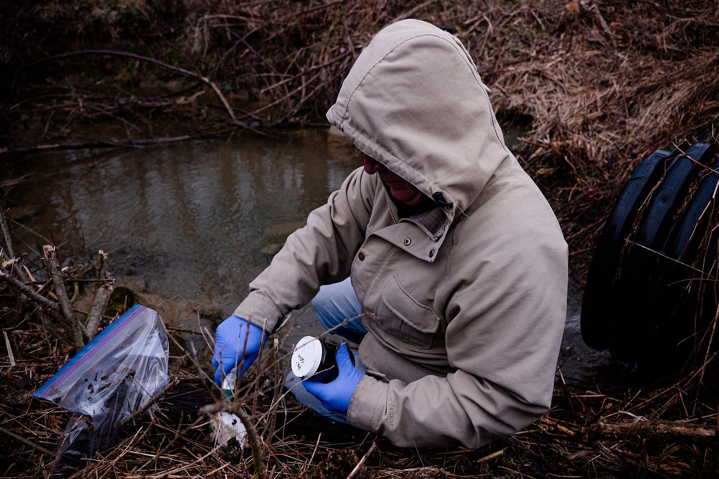 In 2020, Andrew visited Pennsylvania on a drizzly day to collect water, air and soil samples for independent radioactive tests. He told our team: