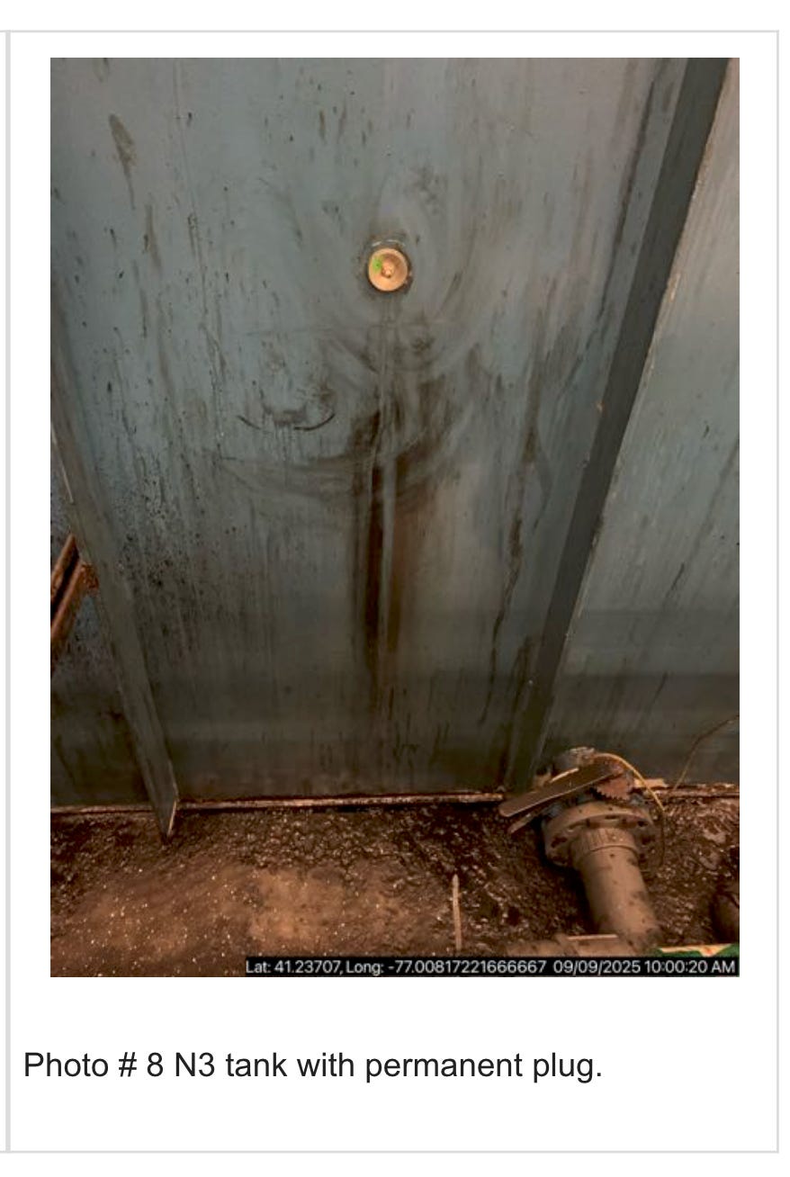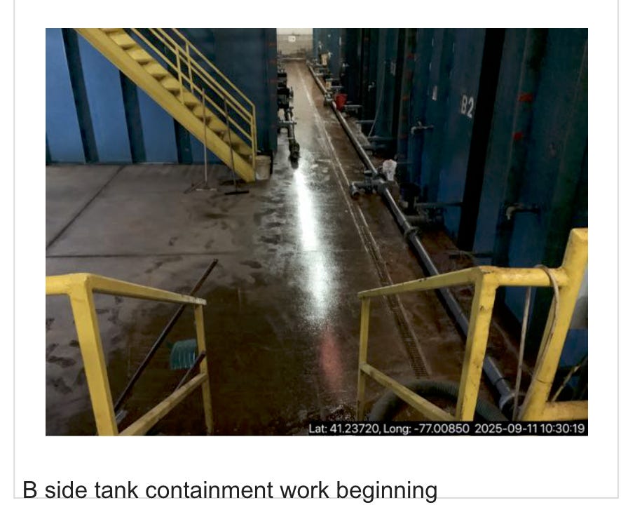 DEP estimate (Aug. 18, 2025): 16,000 gallons spilled from Tank N3 (26,000 gallon capacity).